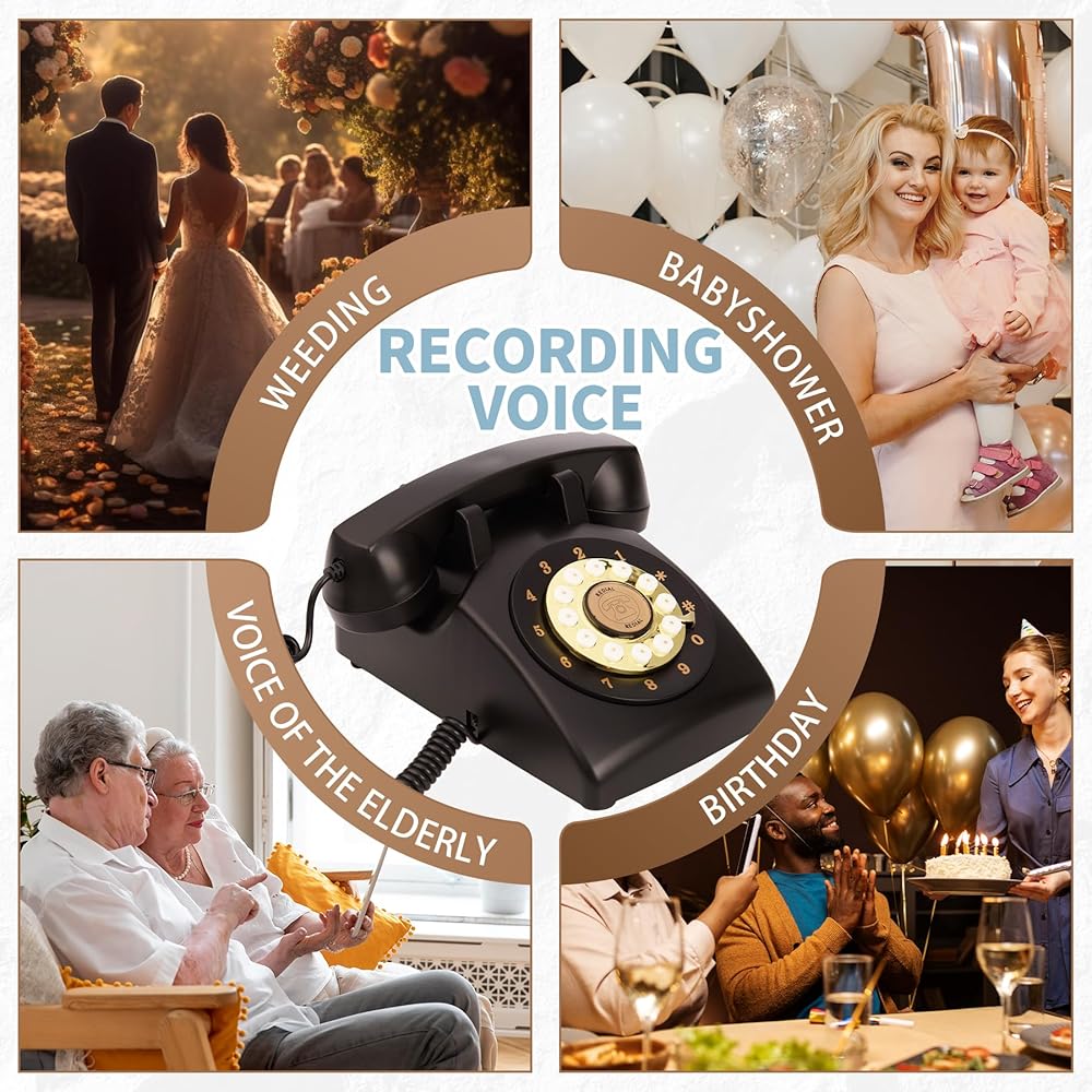 • 【ذاكرة عالية السعة، سهلة الاستخدام】التشغيل بسيط جدًا ولا يتطلب مهارات متخصصة، يمكن للجميع استخدامه بسهولة. ما عليك سوى التقاط سماعة الهاتف الخاصة بـ Audio Guest Book Phone، وبعد سماع الصفارة، يمكن للضيوف تسجيل رسائلهم الخاصة، والتي يتم حفظها للأبد على بطاقة الذاكرة المرفقة بسعة 32 جيجابايت.