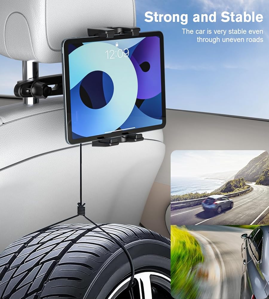 • ❤️ Device Compatibility ❤️: Car tablet holder is compatible with 5-13 inch devices such as iPad Pro 12.9, iPad Pro 11, iPad 10.9/iPad 10 generation, iPad Air 5/4, iPad Pro 10.5/9.7, iPad Mini 6/5, Galaxy Tab S8/S7, Kindle, Fire HD, etc. 🚗 Clip is 0.78 inches (20 mm) thick on the side and can be used without removing the tablet case 🚗.