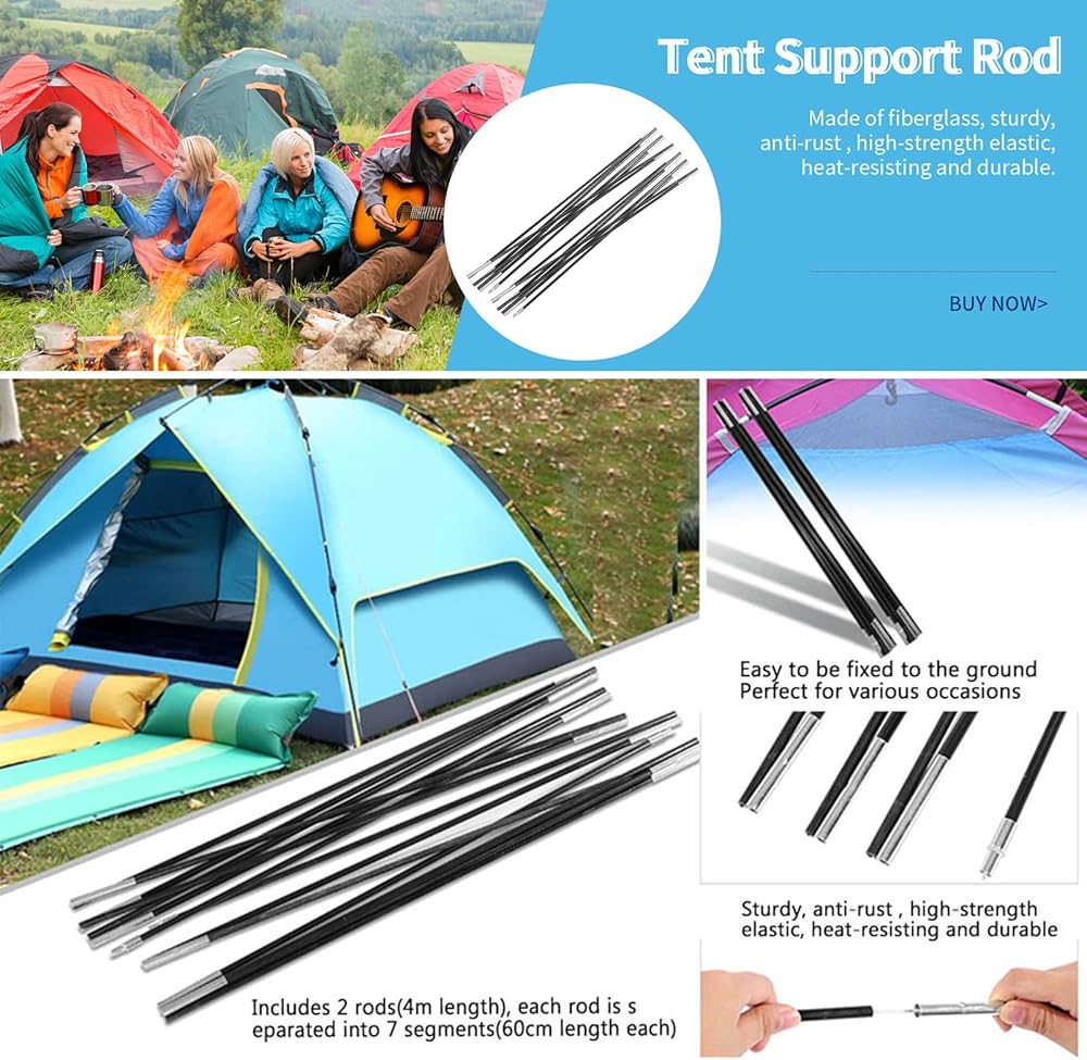 Fiberglass Material: The tent poles are made of fiberglass, sturdy, anti-rust , high-strength elastic, heat-resisting and . these tent poles are in use and can be used as spare or replacement parts.