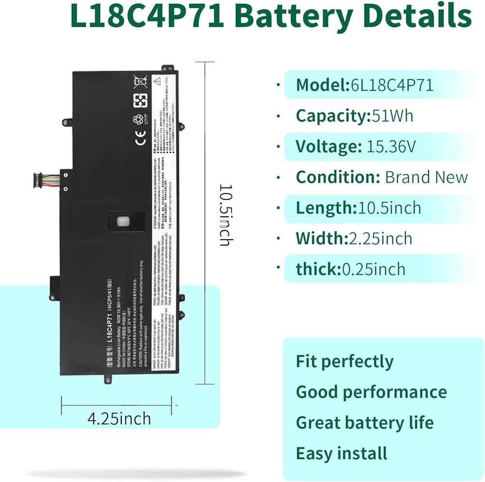 الجودة والشهادة: بطارية L18C4P71 02DL006 الخاصة بنا متوافقة للغاية مع بطارية L18C4P71 02DL006 Lenovo ThinkPad X1 الأصلية وتلبي معايير CE/FCC/ROHS/UL المعتمدة. إنه منتج جديد تمامًا من الشركة المصنعة ويدعم ما يصل إلى 1000 دورة إعادة شحن.