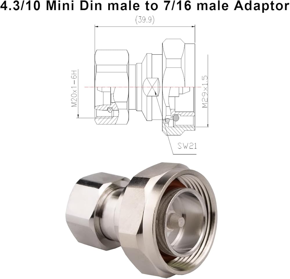 4.3-10 Mini Din male to L29 female adapter with Low PIM 160 dBc