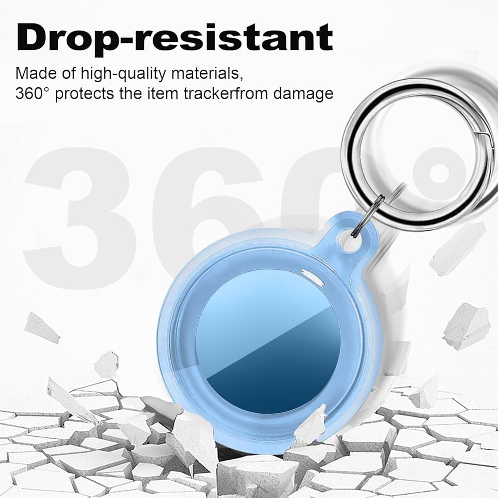 مقاوم للسقوط والخدش: يتميز حامل Airtag بتصميم ملتف بالكامل بزاوية 360 درجة لحماية AirTag بشكل أفضل من الخدوش ويمكنه تحمل قطرات تصل إلى 1.5 متر (5 أقدام)