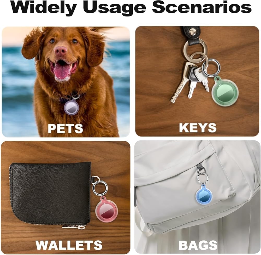 سلسلة مفاتيح محمولة: يأتي حامل بطاقة الهواء هذا مع سلسلة مفاتيح. يمكنك بسهولة ربط سلسلة مفاتيح Airtag بأي منتج مثل مفاتيح السيارة أو أطواق الكلاب أو حقائب ظهر الأطفال أو الأمتعة أو غيرها من الأشياء الثمينة، لم تعد تقلق بشأن العناصر المفقودة
