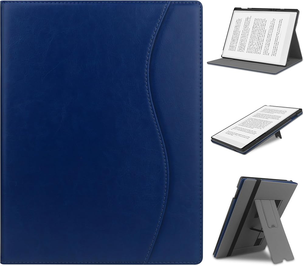 【حامل متعدد الزوايا:】جيب عمل مدمج لتخزين بطاقاتك المصرفية أو الملاحظات أو الفواتير أو المستندات الأخرى. يوفر تصميم الحامل القابل للطي 3 زوايا رؤية مريحة. يوفر تصميم حزام اليد المرن تجربة قراءة مريحة وآمنة بيد واحدة.