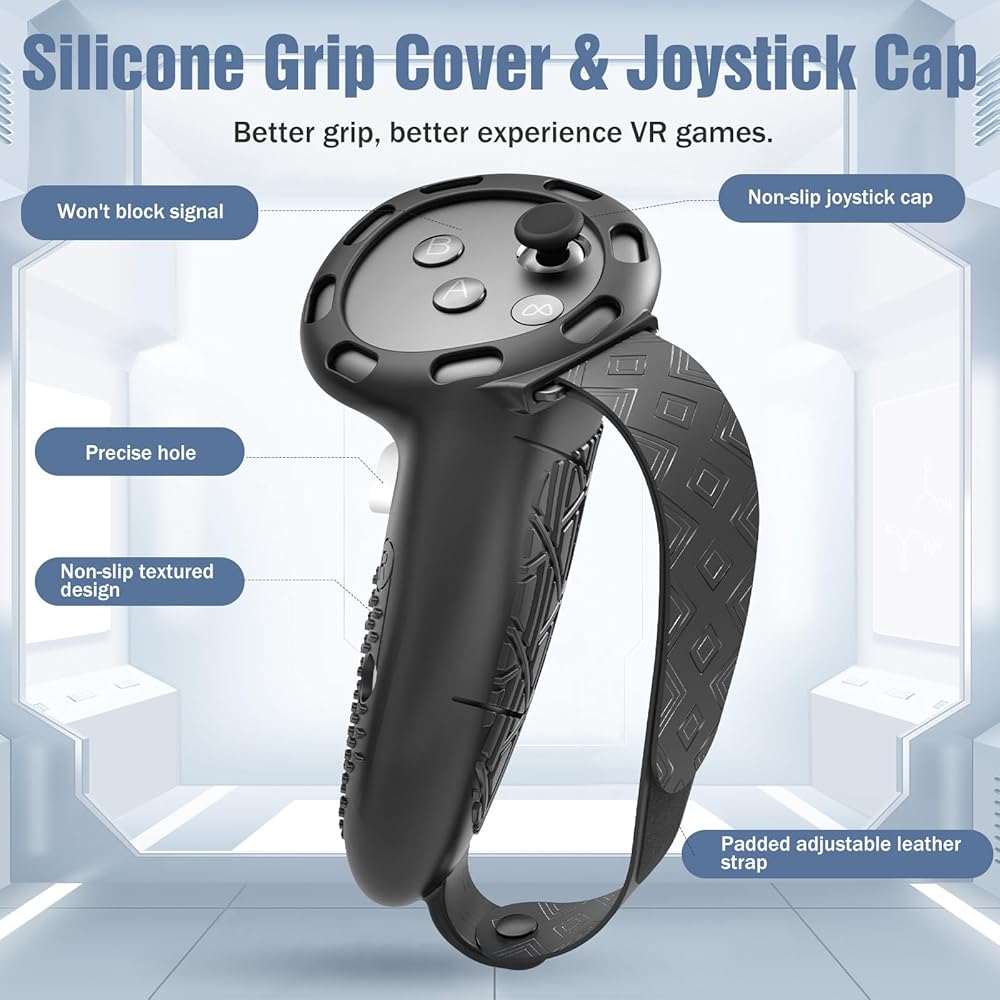 مجموعة الحماية Quest 3S 7 في 1: تم تصميم مجموعة الحماية الشاملة هذه لجهاز Meta Quest 3S الجديد، وجميعها متوافقة تمامًا مع Quest 3S. تم تصميم هذه المجموعة لتوفير حماية أفضل وتجربة أفضل للواقع الافتراضي. سوف تحصل على: غطاء حماية من مادة TPU*1، غطاء وجه VR*1، غطاء مقبض تحكم من السيليكون*زوج واحد، غطاء بطارية*2، غطاء عدسة*1، غطاء إبهام*2، غطاء عين للاستعمال مرة واحدة*10.