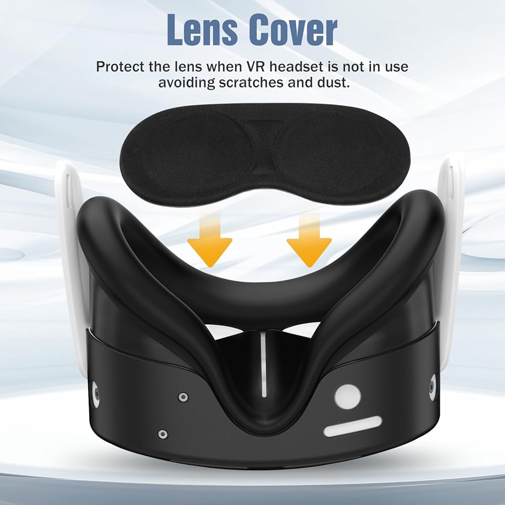 غطاء العدسة ومقابض الإبهام: يمكن لغطاء العدسة تغطية العدسة وحمايتها عندما لا يكون الواقع الافتراضي قيد الاستخدام، وتجنب خدش العدسة ودخول الغبار. أغطية البطارية يمكن لأغطية عصا التحكم أن تزيد من المقاومة للتحكم الدقيق في اللعبة، كما أنها تحمي عصا التحكم من الخدوش في الاستخدام اليومي.