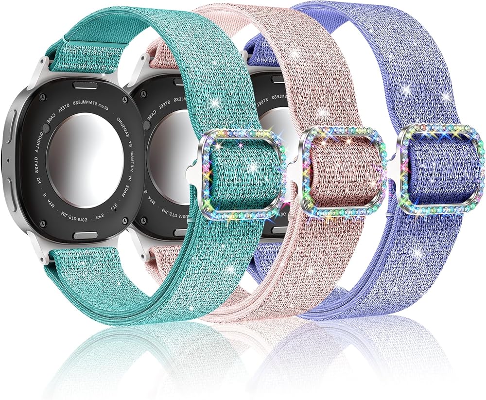 Add a Sparkle to Your Galaxy Watch: Elevate your wrist fashion with our vibrant, stylish 20mm replacement bands, expertly woven from lustrous silver wire and cushiony nylon. Perfect for lively women, 3 colors set infusing a touch of zest to every look