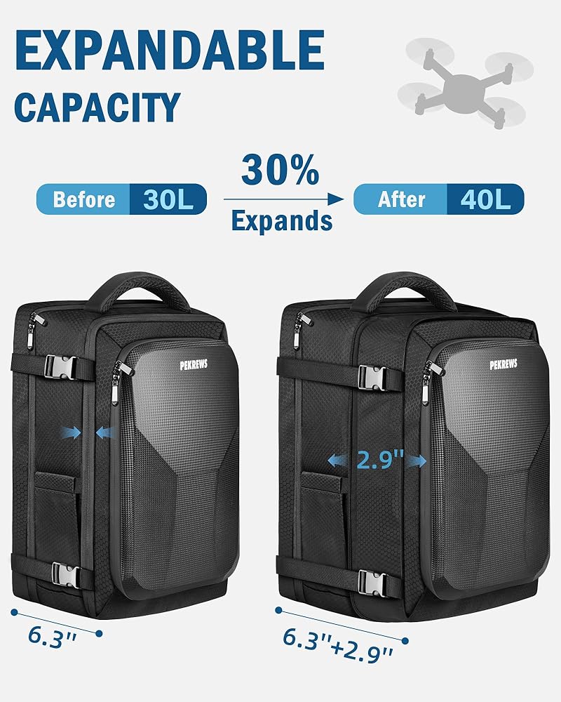 PEKREWS avata 2 case is the well-made accessory for drone enthusiasts who want to keep their drone equipment safe and well-organized. Designed to be compatible with DJI Avata 2 drone, DJI Goggles 3, DJI RC Motion 3 and other gear, this avata 2 bag is made up of a high-quality EVA shell that provides excellent protection against damage caused by impacts, bumps, and scratches. Inside the avata 2 backpack, you will find 3 dedicated pockets and a spacious mesh pocket to separately place all the avata 2 drone accessories, including DJI Goggles 3, DJI RC Motion 3, Fly More Combo, Two-Way Charging Hub, extra Flight Batteries, chargers, cables, nd filters, lens, props, etc. This drone case avata 2 is the efficient solution for transporting your drone safely and comfortably. The drone carrying case for dji avata 2 features 2 padded carrying handle, a back luggage sleeve, and adjustable shoulder straps. Also, the drone bag avata 2 has an expandable compartment for ample capacity. Unzip to get 40 L storage, the main room can fit a camera, clothes, and travel items for a short trip. Its external dimensions meets most flights' carry-on requirements and fits perfectly in the overhead bin, applicable for airlines such as Delta, Alaska, American, etc. If you're looking for a versatile carrying case compatible with DJI avata 2 that can be used for different purposes, this avata 2 case is suitable for you. It can be used as a drone laptop backpack, avata 2 drone case backpack, avata 2 drone case bag, avata 2 hard carry case, avata 2 carrying bag, avata 2 travel bag, avata 2 travel bagpack. Overall, Pekrews avata 2 drone backpack is a must-have for anyone who wants to make their drone secure and portable while on the go. With its robust construction, ample storage space, and comfortable design, this avata 2 bag is the expected drone accessory for you.