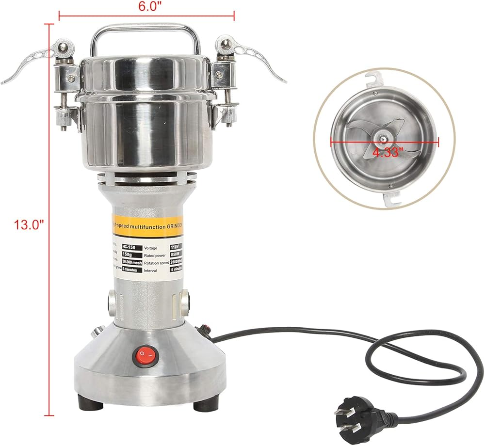 It has high speed motor,can grind all kinds of corns,grains,herb,rice,pepper,medicine (such as ganoderma, licorice, tianqi, pearl etc) into fine powder quickly.