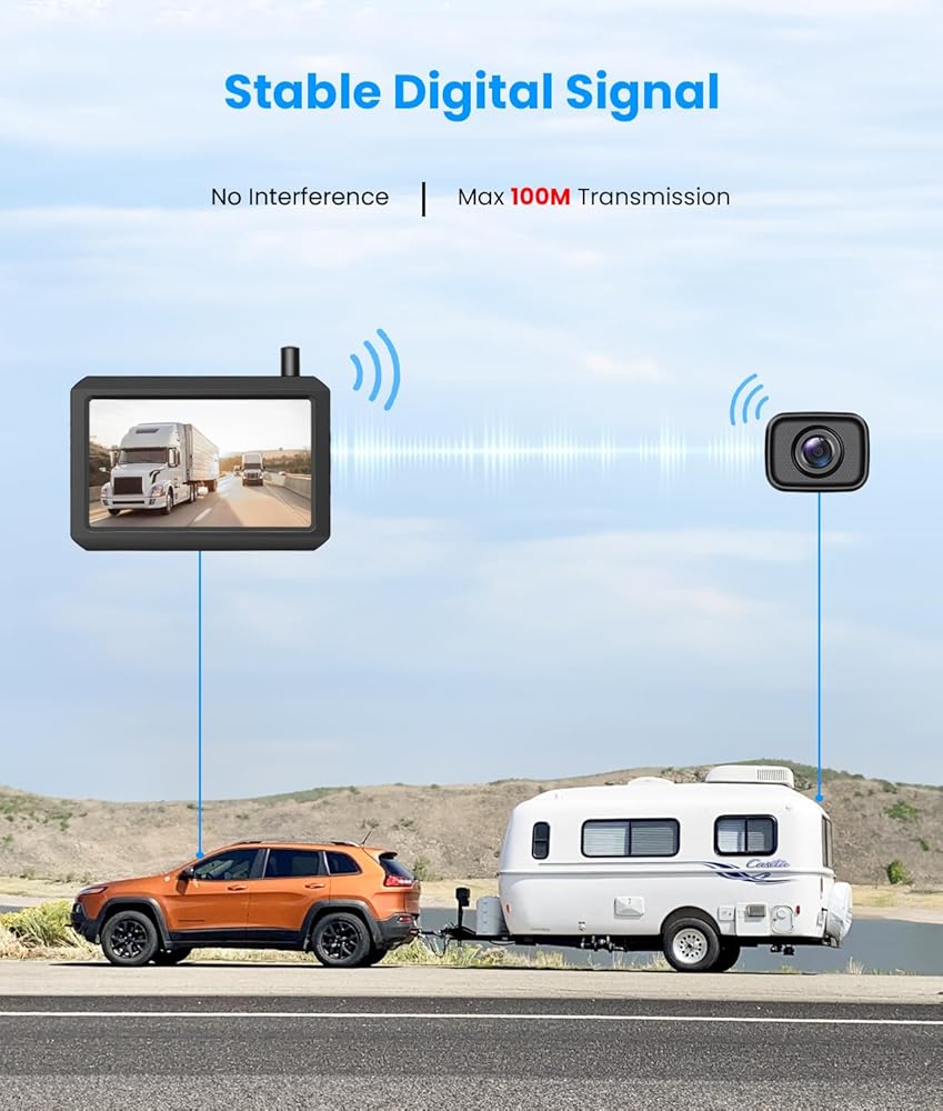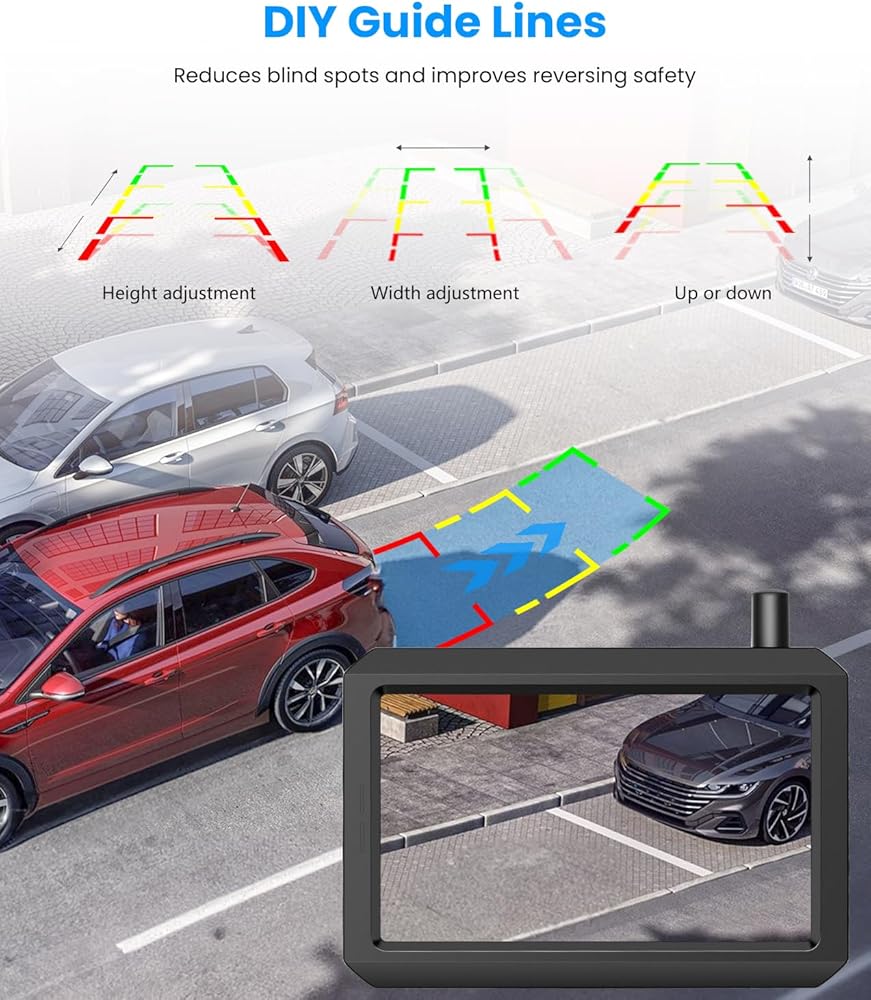 جودة الصورة عالية الدقة: كاميرا احتياطية لاسلكية W7Pro شاشة LCD مقاس 5 بوصات، جودة الصورة واضحة بدون ضوضاء، ألوان ناعمة بدون وهج، يمكنها مراقبة وتحديد البيئة المحيطة في الصورة بشكل أفضل