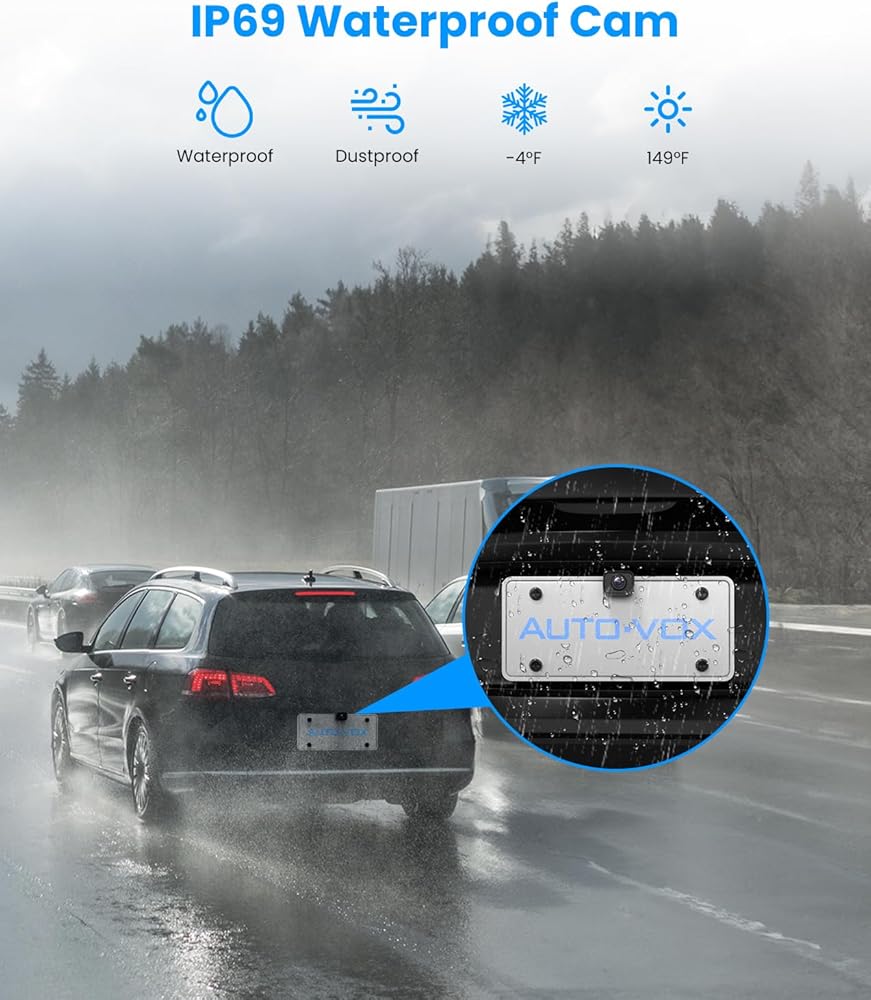 ترقية التصميم: الكاميرا العكسية مصنوعة من غلاف قوي، مقاومة للماء IP69، تقنية إغلاق طلاء النانو تمنع الغبار والمطر من الدخول. نطاق درجة الحرارة -20 درجة مئوية ~ 65 درجة مئوية، لا تزال الكاميرا الاحتياطية للسيارة تعمل بثبات في الأماكن المنخفضة والمتوسطة الطقس الحار