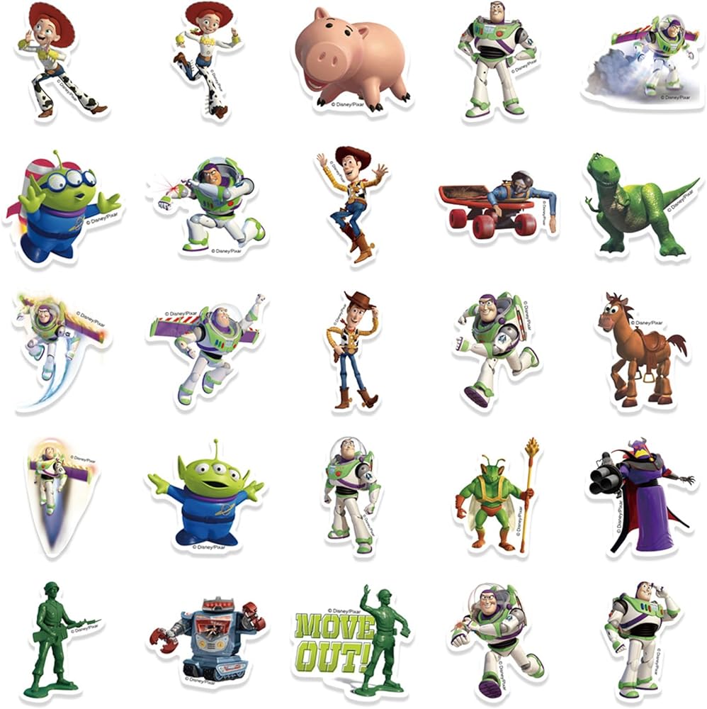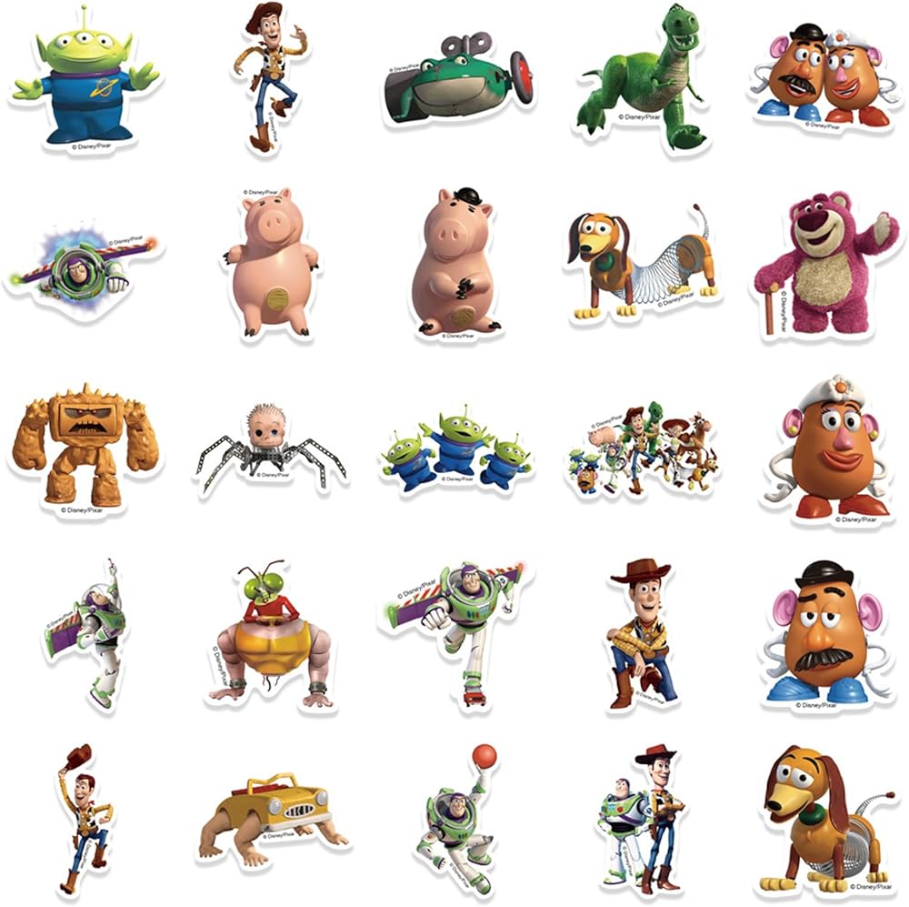 ملصقات Toy Story لزجاجة مياه للأطفال، 50 قطعة من ملصقات أفلام الرسوم المتحركة للأولاد، ملصقات مقاومة للماء للكمبيوتر المحمول في سن المراهقة، الجيتار، الأمتعة، لوح التزلج، الهاتف، الخوذة