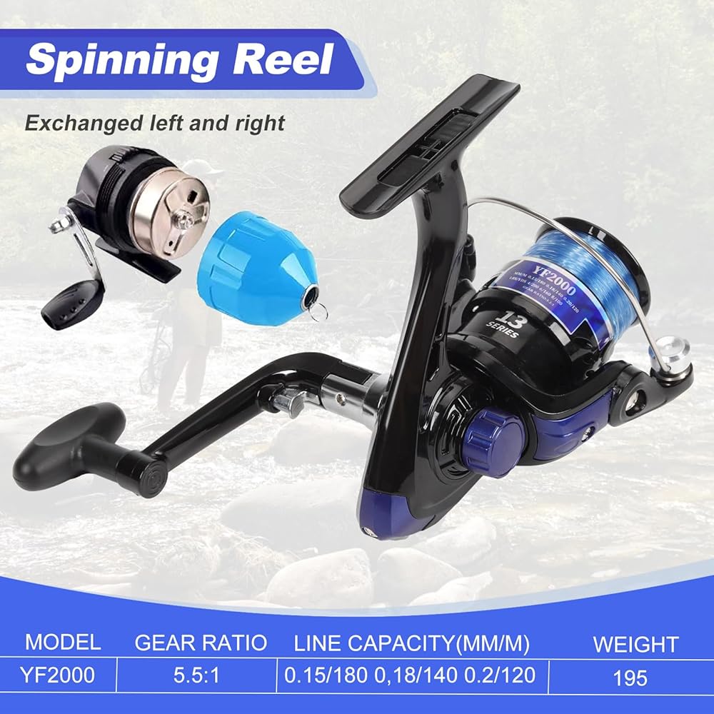 🐠[بكرات قوية] تتميز بكرة الغزل YF2000 بتروس دقيقة ونسبة تروس تبلغ 5.5:1، مما يجعلها قوية جدًا. يمكن تبديل الأذرع الهزازة من اليسار واليمين لتلبية عادات المستخدم المختلفة. تتميز بكرة Spincast للأطفال بتصميم زر ضغط. ومغلفة مسبقًا، لا حاجة إلى التجميع. ما عليك سوى الضغط على الزر للإلقاء ثم البكرة لاستعادة خط الصيد