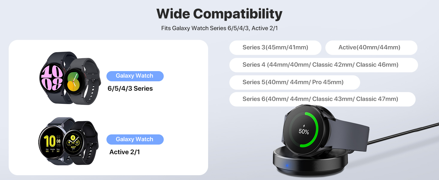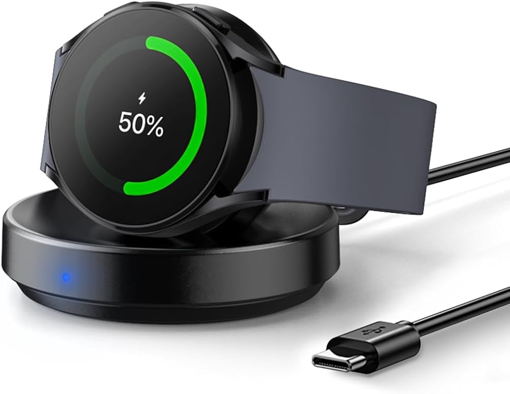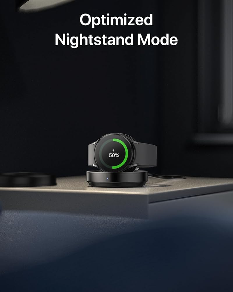 ✅ 𝐒𝐭𝐞𝐚𝐝𝐲 𝐚𝐧𝐝 𝐑𝐞𝐥𝐢𝐚𝐛𝐥𝐞 𝐂𝐡𝐚𝐫𝐠𝐢𝐧𝐠: استفد من قوة شحن Samsung Watch دون قلق من ارتفاع درجة الحرارة. يضمن شاحن الساعة اللاسلكي هذا الخاص بشركة سامسونج تشغيل ساعتك بنفس سرعة الشاحن الأصلي، مما يبقيها جاهزة لمغامرتك القادمة.