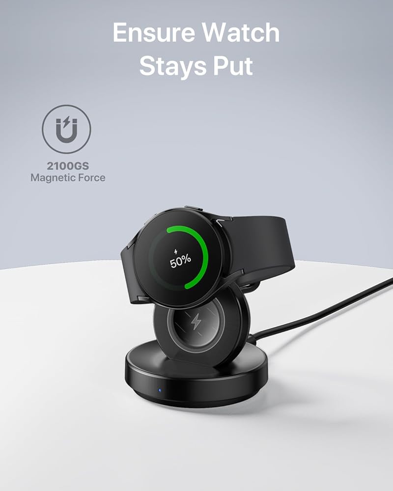 ✅𝐈𝐧𝐭𝐨𝐯𝐚𝐥 𝐌𝐚𝐠𝐧𝐞𝐭𝐢𝐜 𝐏𝐫𝐞𝐜𝐢𝐬𝐢𝐨𝐧 𝐟𝐨𝐫 𝐒𝐚𝐦𝐬𝐮𝐧𝐠: استمتع بالشحن السهل والفعال مع شاحن Samsung Watch هذا. تم تصميم القاعدة المغناطيسية المحمولة خصيصًا لسلسلة Galaxy Watch Series 6/5/4/3 وActive 2/1، مما يضمن محاذاة دقيقة، مما يمنع مشكلات المحاذاة الخاطئة.