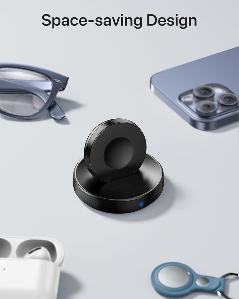 ✅𝐓𝐫𝐚𝐯𝐞𝐥'𝐬 𝐁𝐞𝐬𝐭 𝐂𝐨𝐦𝐩𝐚𝐧𝐢𝐨𝐧: تتميز ببصمة قدم مشابهة للورقة اللاصقة القياسية، مثالية لأي مساحة. يزن فقط 1.3 أونصة، وهو قابل للحمل مثل شاحن ساعة مستقل، وسهل وضعه في الجيوب أو الحقائب. سواء كان لديك Galaxy Watch 4 أو 5 أو 6، فهي مصممة لتكون رفيقك المثالي في السفر.