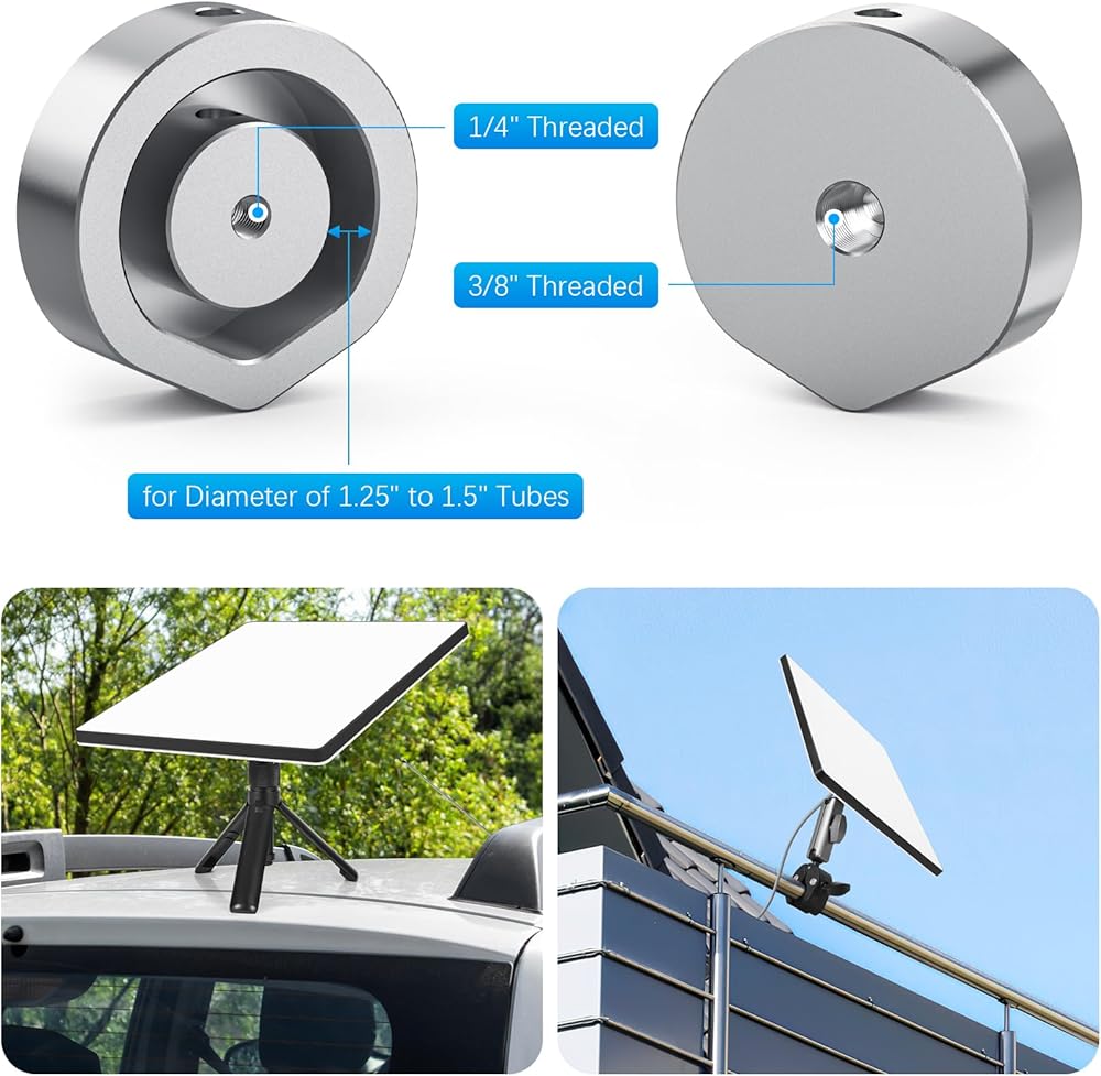 【محول مخصص】هذا حامل محول مشبك/حامل ثلاثي القوائم مصمم لمحول أنبوب الأطباق الصغير StarLink. يمكن توصيله بسرعة بخيوط 1/4 بوصة و3/8 بوصة، وهو متوافق أيضًا مع أنبوب بقطر 1.25 بوصة - 1.5 بوصة. إنه ملحق صغير عملي من Star Link للمنزل، والسقف، والخارج، والتخييم، والسيارة، والسفن السياحية.