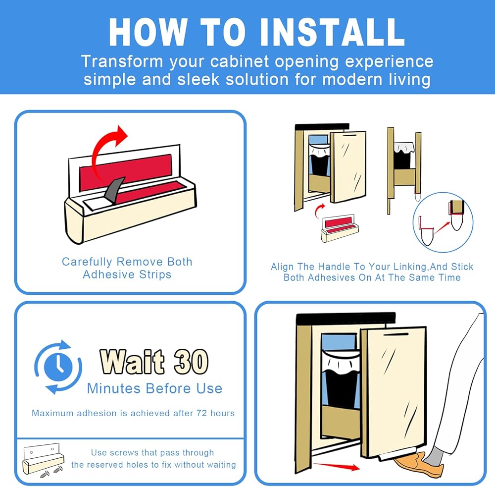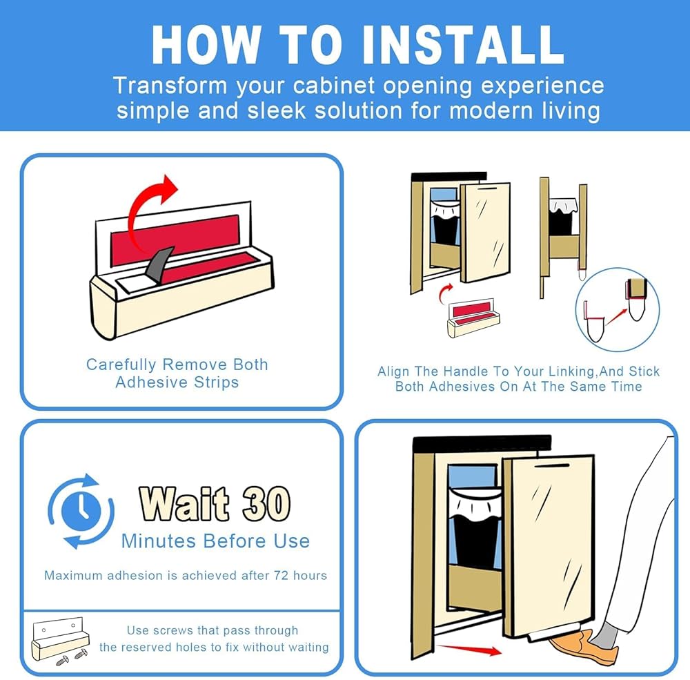 تصميم بدون استخدام اليدين: تم تصميم سحب القدم للخزانة للأشخاص في المطبخ. عندما تكون يديك متسخة أو تمسك بشيء ما، ما عليك سوى مد قدمك إلى أسفل باب الخزانة ثم اسحبها للخلف لفتحها بسهولة. وفي الوقت نفسه، حافظ على نظافة يديك.