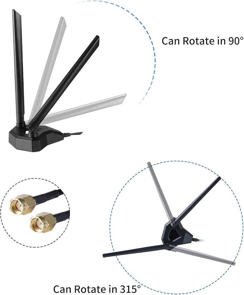 Support 802.11 b/g/n/ac/ax/wifi 6, Compatible with all Wireless Network Router, WiFi Motherboard, WiFi Hotspot, PC Desktop Computer Network Card etc..