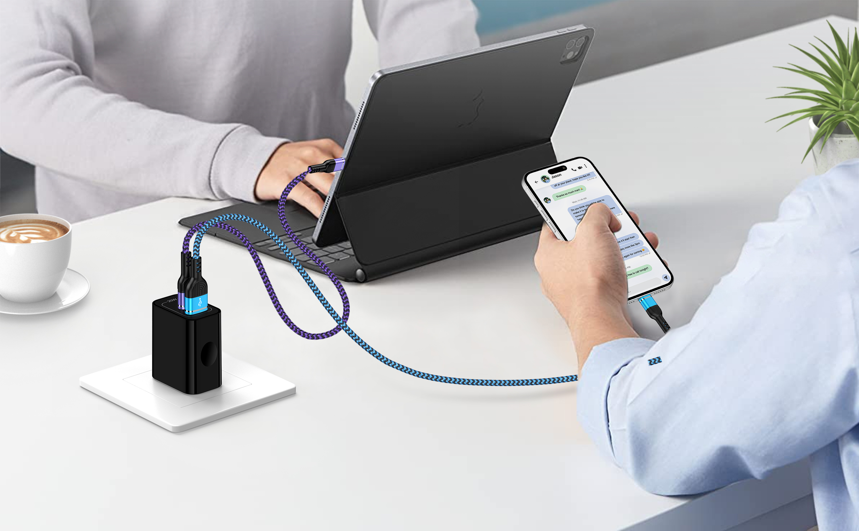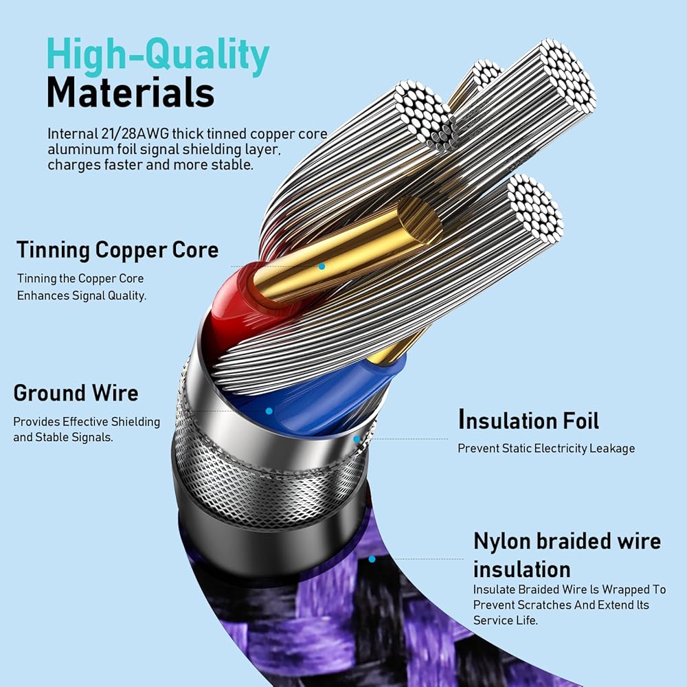 محول حائط USB بألوان زاهية: تبرز كتلة شاحن USB الأسود وكابل الشحن USB-C الأرجواني في درج مجموعات الشحن البيضاء القياسية الأخرى ويسهل العثور عليها، مما يساعدك على تحديد الشاحن بنفسك في المنزل/المكتب