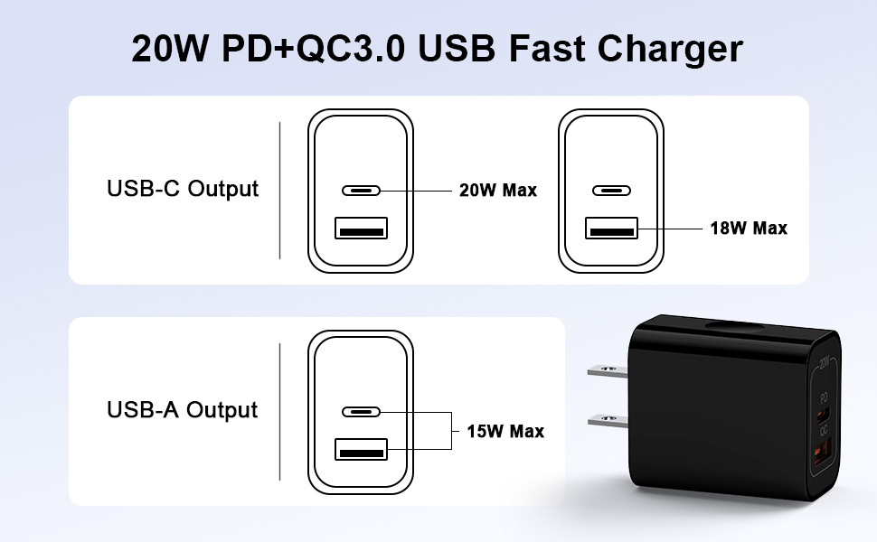 الإمساك والانطلاق: مع منفذ USB-A ومنفذ USB-C، يتوافق محول الطاقة USB ثنائي المنافذ QC+PD3.0 مع جميع أنواع كابلات الشحن USB ويمكنه شحن ما يصل إلى جهازين في نفس الوقت، قم بالتوصيل والشحن