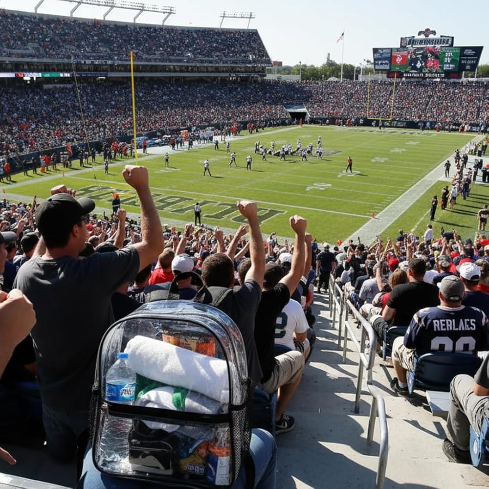 【تصميم عصري وعملي】-- بطانة من النايلون، سحاب للإغلاق. الحجرة الرئيسية مقاس 30.48 سم × 30.48 سم × 15.24 سم مناسبة للملابس الدافئة، ومعطف المطر القابل للطي، وملابس الفريق، وعلم الفريق، والوجبات الخفيفة، والكاميرا، والعصي المتوهجة وغيرها من الأمتعة. جيب خارجي صغير بقياس 30.48 سم × 15.24 سم، لسهولة الوصول إلى إكسسواراتك الشخصية الصغيرة: المحفظة، والهاتف الخلوي، وسماعات الأذن، ومفاتيح السيارة، وصفارة التشجيع، إلخ. جيبان شبكيان جانبيان للطي المظلات وزجاجات المياه.