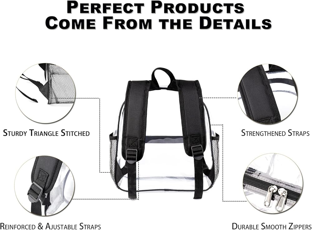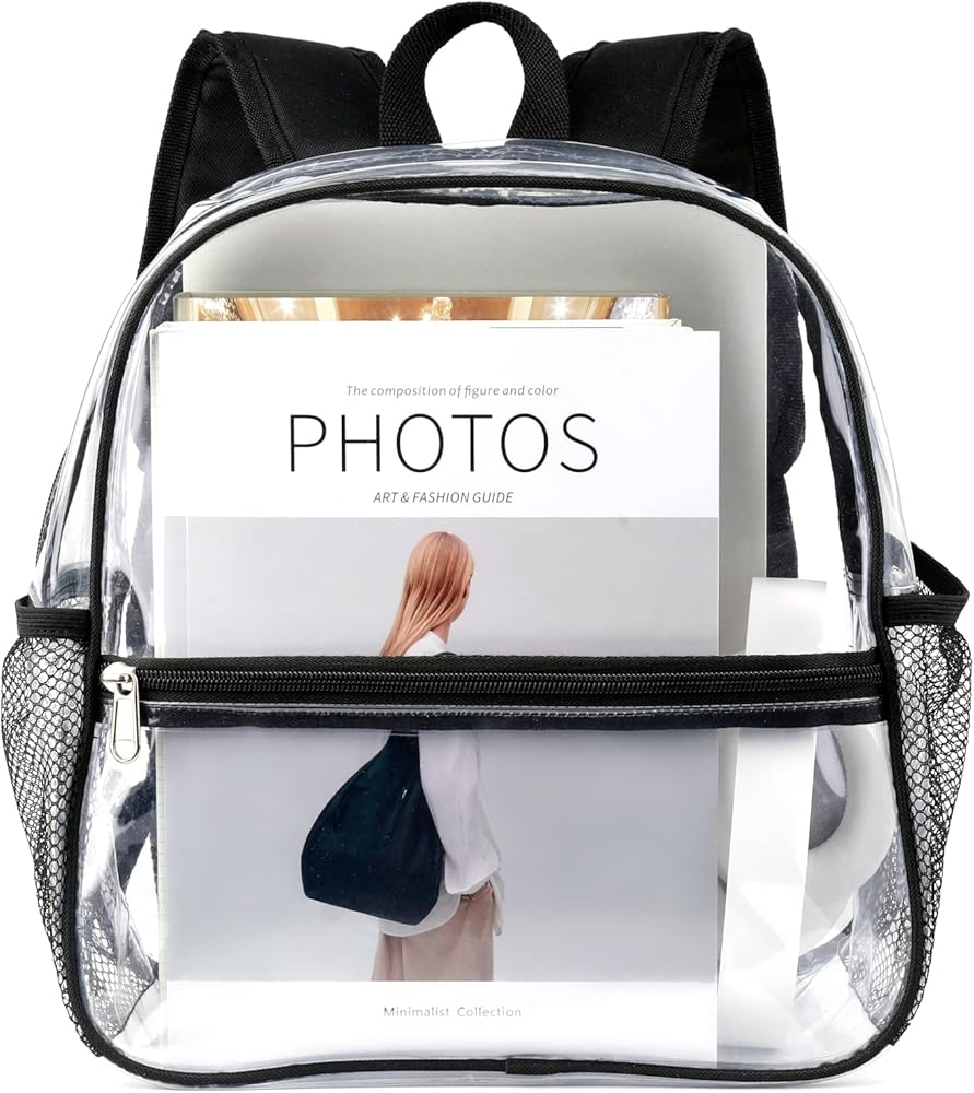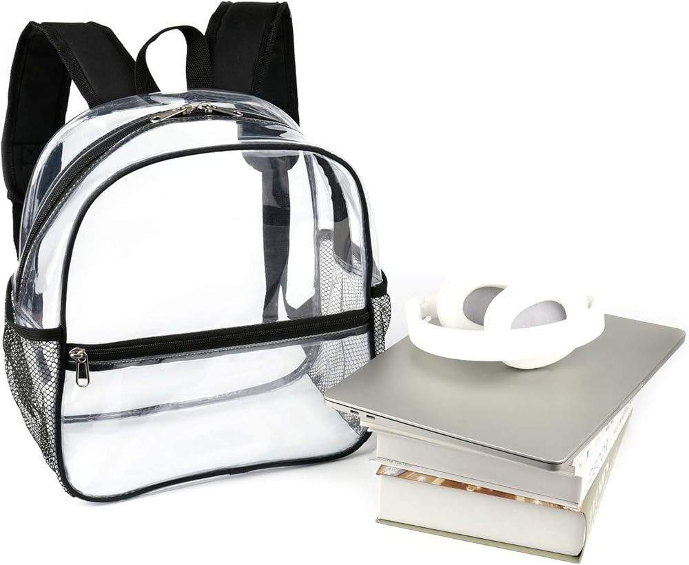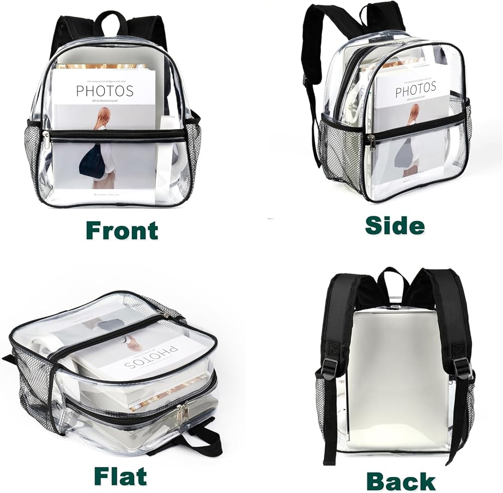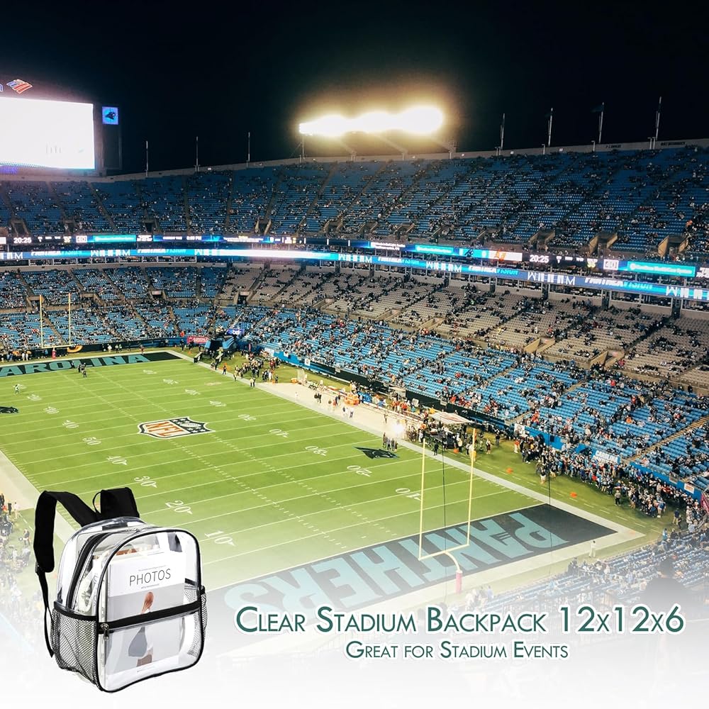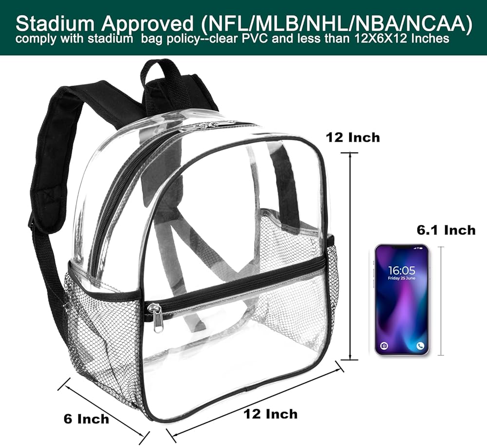 【معتمدة من الاستاد】-- مقاس حقيبة الظهر الصغيرة الشفافة اللطيفة 12x12x6 بوصة، شفافة تمامًا ويمكن رؤيتها من جميع الجوانب، تتوافق مع سياسة الحقائب الشبكية/الشفافة في الاستاد، رائعة للملعب والأماكن والحفلات الموسيقية والمهرجانات الموسيقية والألعاب والأحداث الرياضية والمدرسة الثانوية وألعاب كرة القدم الجامعية والكازينوهات والمعارض والمطارات وما إلى ذلك. إنها تجعل الحياة أسهل بالنسبة لك ولحراس الأمن.