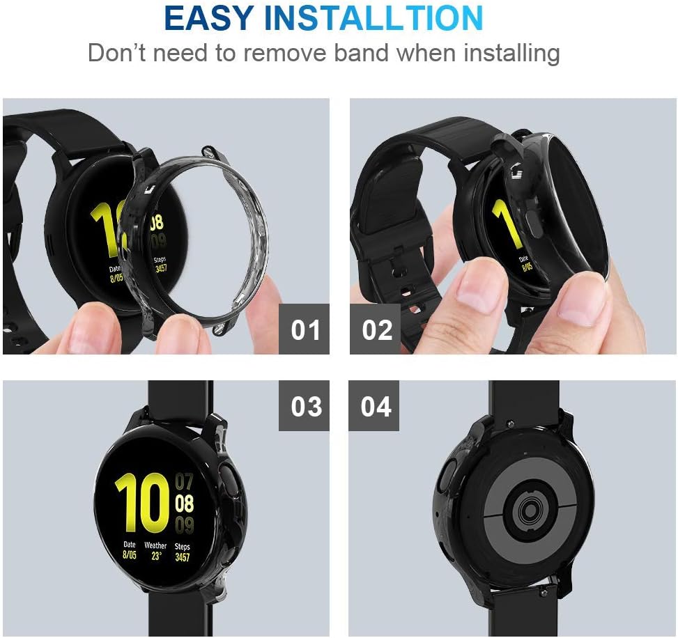 [حماية كاملة]: واقي الشاشة المتوافق مع Samsung Galaxy Watch Active2 مقاس 40 مم من مادة TPU والذي يمكنه حماية ساعتك من الغبار والأوساخ والخدوش والأضرار متين ومرن وقابل للغسل