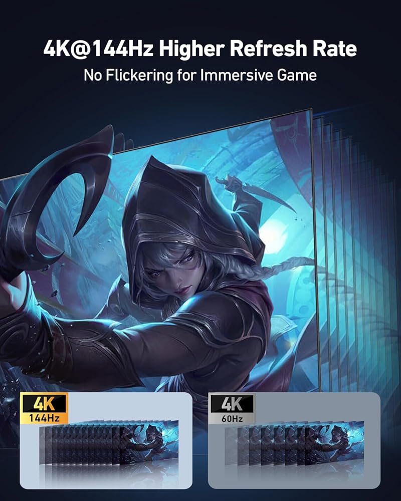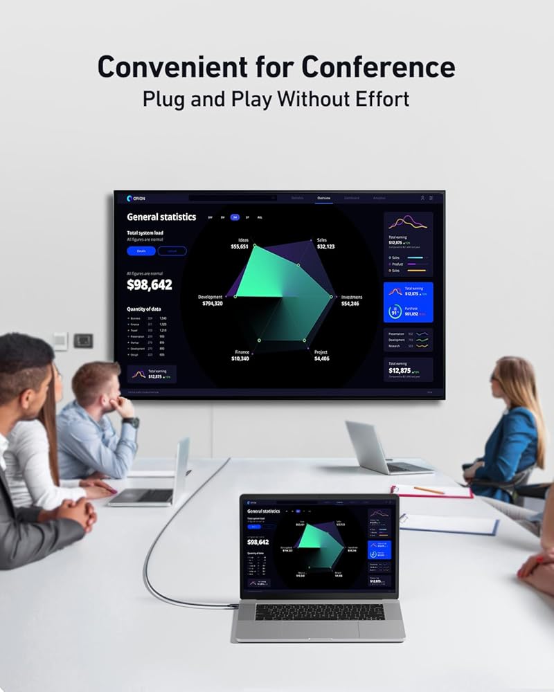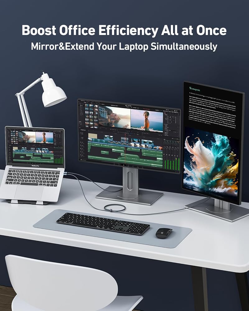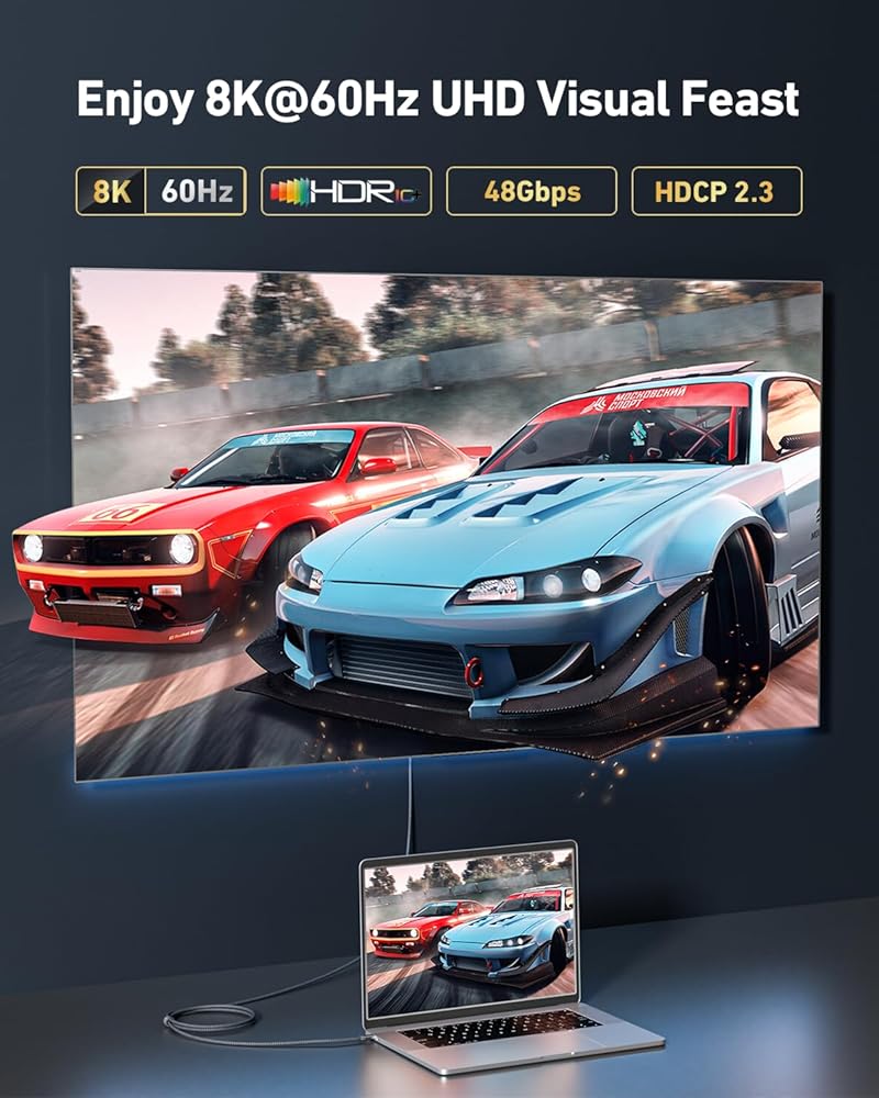 【تحسين كفاءة العمل】قم بمرآة أو تمديد سطح المكتب الخاص بك لتعزيز الإنتاجية. نقل البيانات بسرعات تصل إلى 48 جيجابت في الثانية ومعدل تحديث عالٍ يبلغ 240 هرتز. يمكنك تلبية جميع الاحتياجات بدءًا من الاستخدام المكتبي اليومي وحتى تحرير الفيديو والصور الاحترافي.