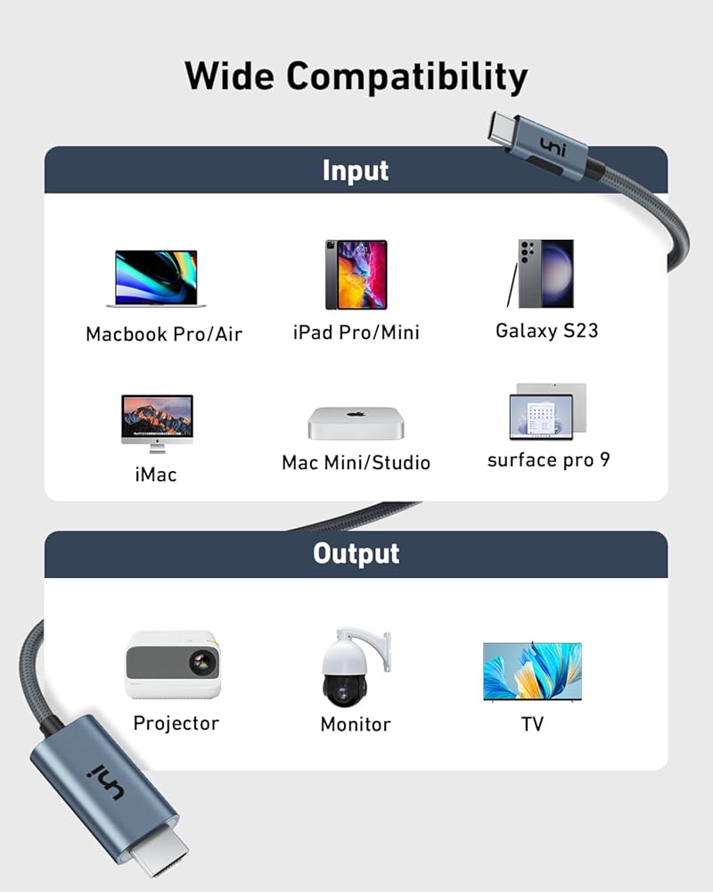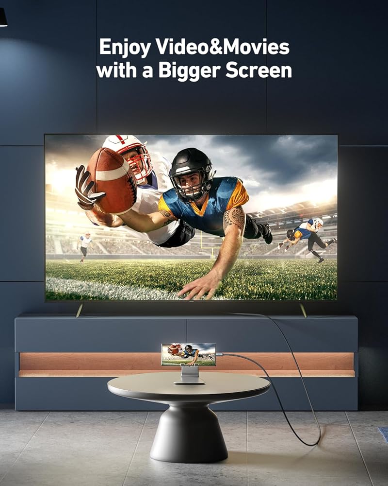 【تجربة بصرية أكبر】يمكن لكابل Uni Thunderbolt 4 إلى HDMI توصيل هاتف Android الخاص بك بسهولة بشاشة/شاشة عرض/تلفزيون مجهزة بHDMI في السفر/الاجتماعات/المكتب المنزلي. ويمكنك الاستمتاع بمشاهدة الأحداث الرياضية والأفلام وألعاب الفيديو والصور/الألبومات مباشرة على شاشتك الكبيرة.