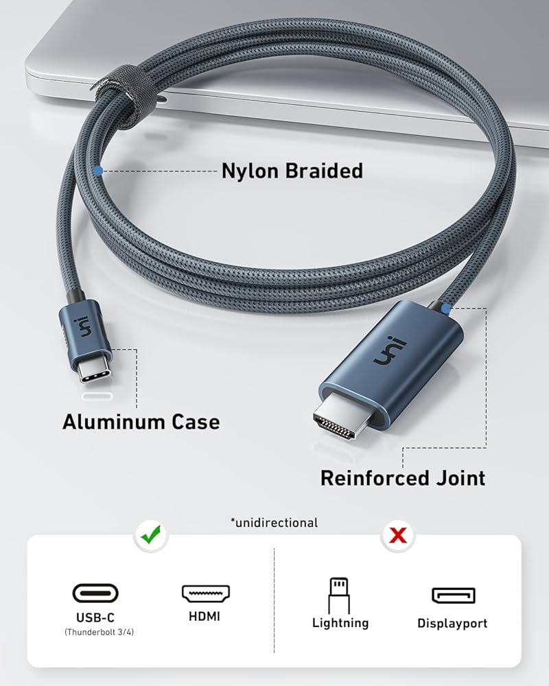 📌نقاط للانتباه: ①سلسلة MacBook تدعم فقط 4K عند 60 هرتز كحد أقصى، وذلك بسبب القيود المفروضة على نظام macOS نفسه. ②لا يدعم كابل 8K USB C إلى HDMI الشحن. ③تعتمد الدقة الفعلية ومعدل التحديث على جهازك ومواصفات كابل HDMI. ④ نقل أحادي الاتجاه، ينقل البيانات فقط من USB c إلى HDMI. ليس كابل DP إلى HDMI أو كابل HDMI صغير. ⑤لا يدعم جهاز MacBook Air M3✖️