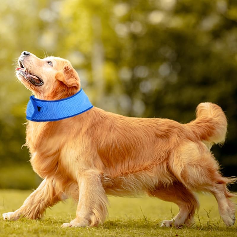 تبديد الحرارة: أطواق تبريد الكلاب المكونة من 6 قطع مصنوعة من مادة بولي فينيل كلوريد خفيفة الوزن ماصة للماء وتتميز بتقنية التبريد لامتصاص الكثير من الماء والسماح للماء بالتبخر بسرعة؛ سيمتص تبديد الحرارة تحت التبخير الحرارة من المناطق المحيطة، مما يجعل رقبة الجرو تصل إلى درجة حرارة أقل من الهواء المحيط، وبالتالي يمنحه شعورًا جليديًا وينتج تأثير تبريد، فعال في تخفيف اللهاث والتوتر السلوك في الكلاب بسبب ارتفاع درجة الحرارة