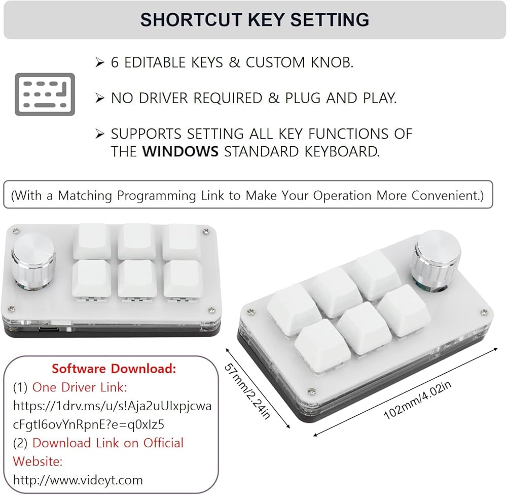 • 6 KEYS SHORTCUT KEY SETTING: Our 6 Key Programming Keyboard supports setting all key functions of the Windows standard keyboard, 6 editable keys. Allowing you to realize multiple sets of complex shortcut keys with one key. The gaming keyboard has a storage function. After setting up Windows, it can be used in systems that support the USB protocol, such as Linux and OS X.