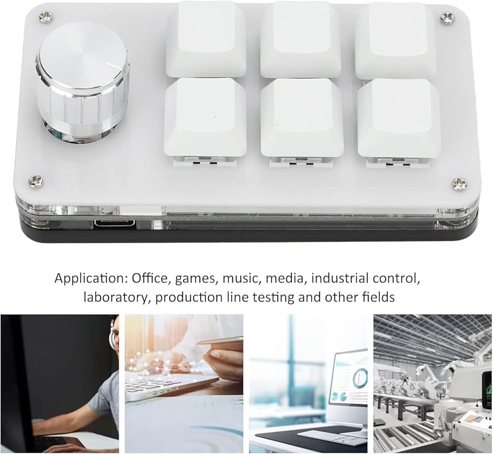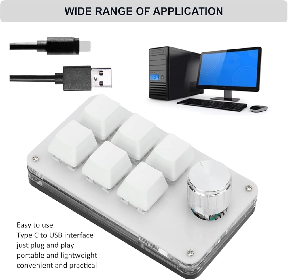 kuidamos 6 مفتاح لوحة مفاتيح ماكرو لوحة مفاتيح ماكرو، لوحة مفاتيح برمجة مع وظيفة المقبض، لوحة مفاتيح ألعاب ميكانيكية بيد واحدة مع واجهة من النوع C إلى USB لنظام التشغيل Windows Vista Linux، مع كابل USB