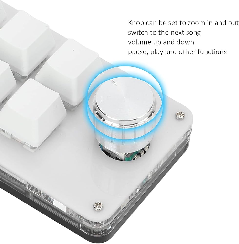 • KNOB FUNCTION: The knob button can be defined as a multimedia button mode to adjust the volume of the computer. Press in the middle to mute. It can also be defined as a normal button mode. The normal button mode can be defined as any button on the computer keyboard. Subtract, zoom in and zoom out, function operation. The knob can be set to zoom in and out, switch to the next song, volume up and down, pause, play and other functions, which are more effective.