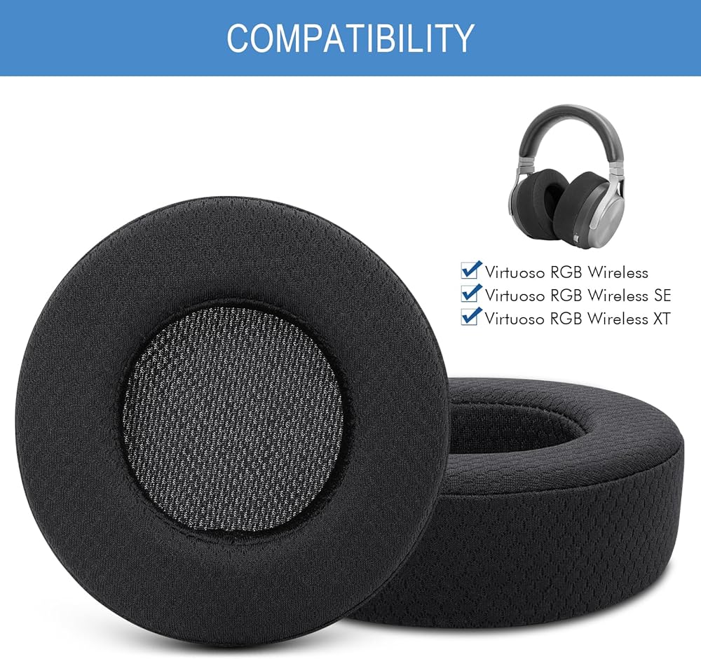 【نسيج شبكي ممتاز】وسادة أذن بديلة عالية الجودة لسماعات الرأس Virtuoso RGB Wireless SE/XT. وسائد الأذن هذه مصنوعة من مزيج من القماش المسامي وإسفنج ميموري ناعم عالي الكثافة لملاءمة مريحة