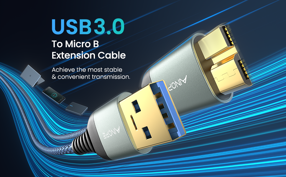 • كابل USB 3.0 ميكرو عالي الأداء: يمكن لكابل القرص الصلب توصيل قرص صلب USB 3.0 خارجي محمول بجهاز كمبيوتر لنقل الملفات أو مزامنتها بسرعة، وشحن هواتف Samsung الذكية أو الأجهزة اللوحية المجهزة بمنفذ USB 3.0 Micro-B.