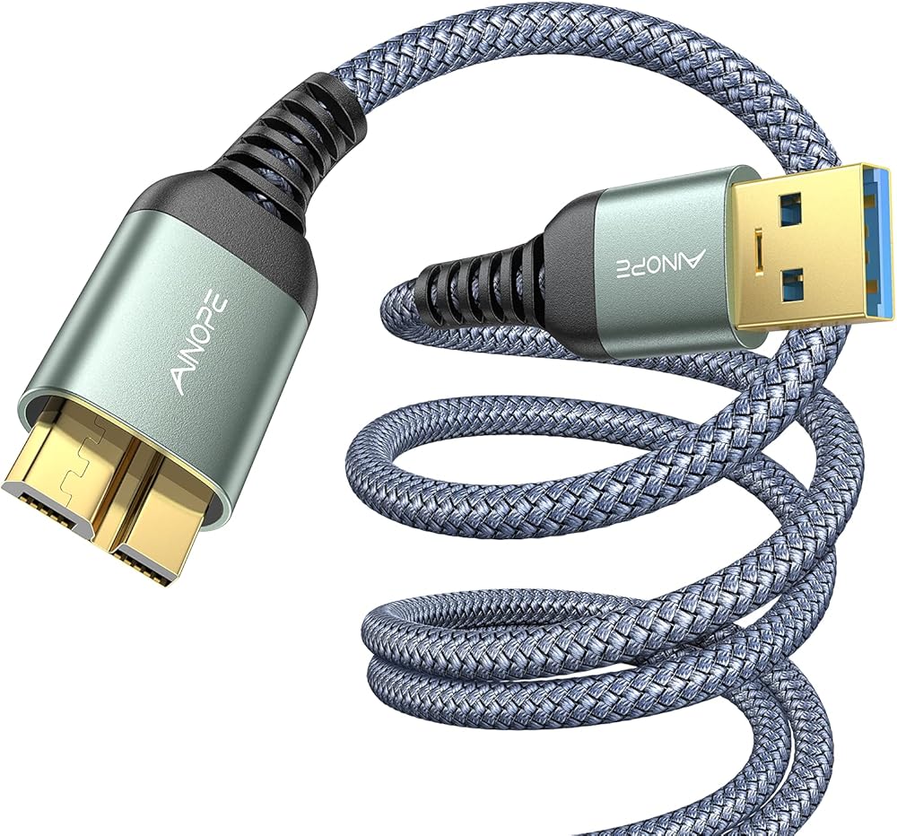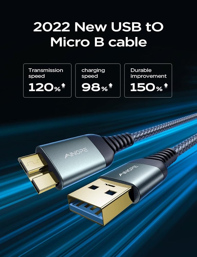 كابل محرك الأقراص الصلبة الخارجي AINOPE بطول 3.3 أقدام، سلك نقل بيانات سريع مضفر من النايلون المتين، كابل Micro B إلى USB 3.0 متوافق مع Samsung Galaxy S5/Note 3/Note Pro 12.2، كاميرا Canon، محرك الأقراص الصلبة Seagate