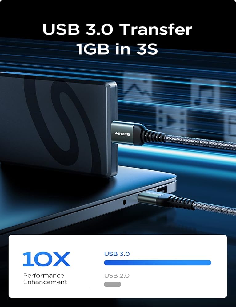 • نقل فائق السرعة 5 جيجابايت في الثانية: كابل AINOPE USB 3.0 يدعم معدل نقل البيانات القياسي USB 3.0 بسرعة تصل إلى 5 جيجابايت في الثانية، أسرع 10 مرات من USB 2.0. يمكن نقل الأفلام عالية الدقة في ثوانٍ معدودة. مع الشحن السريع 3.1 أمبير، يدعم الشحن السريع QC، والذي يمكنه شحن هاتف Samsung S5 الخاص بك بسرعة من 0% إلى 100% خلال ساعة واحدة فقط.