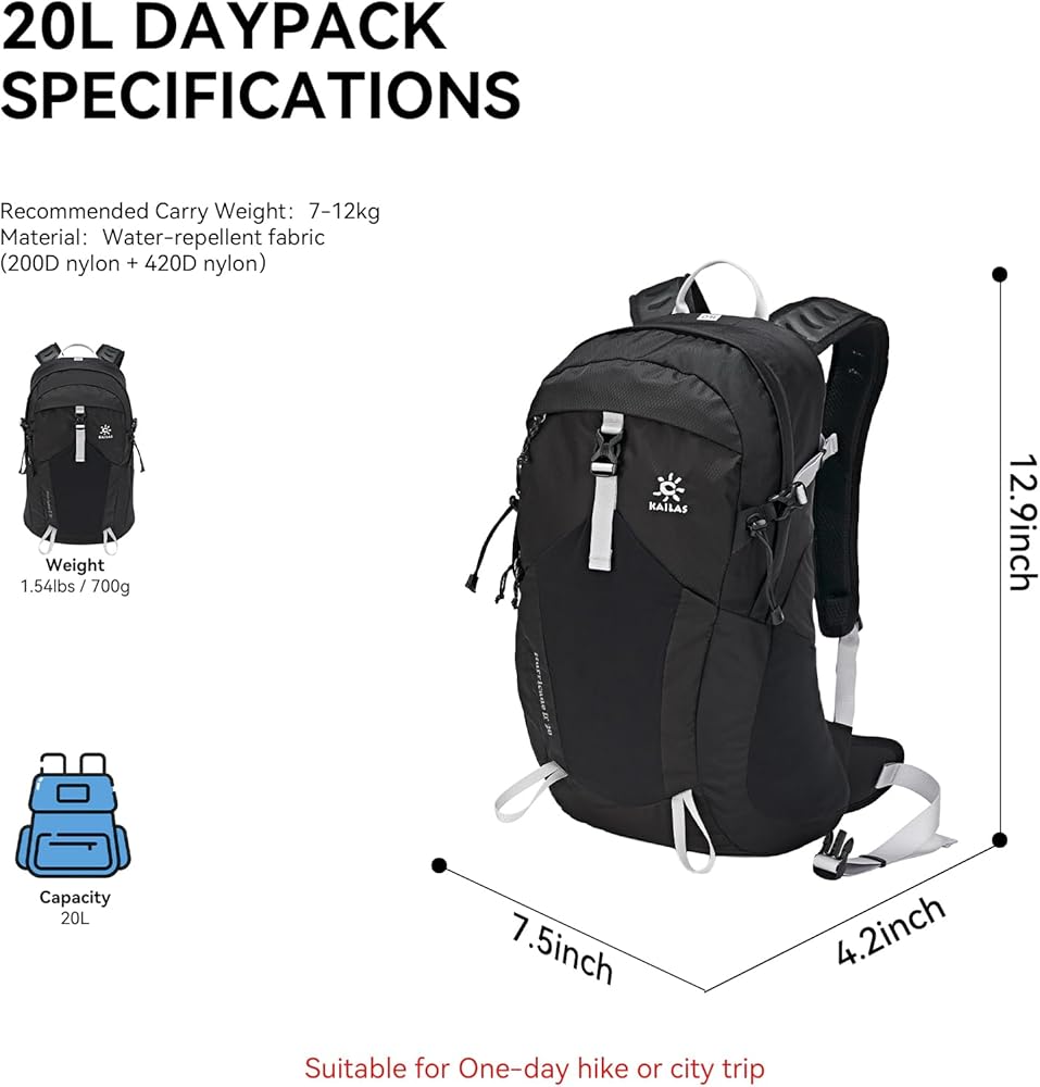 التنظيم: تتميز حقيبة الظهر Kailas Hurricune للمشي لمسافات طويلة بأقسام متعددة. توفر الحجرة الرئيسية مساحة واسعة لجهاز كمبيوتر محمول مقاس 14 بوصة وغيرها من الضروريات، بينما يحافظ جيب الأمان الداخلي على مقتنياتك الثمينة آمنة ومأمونة. الجيوب الجانبية مثالية لزجاجات المياه أو المظلات.