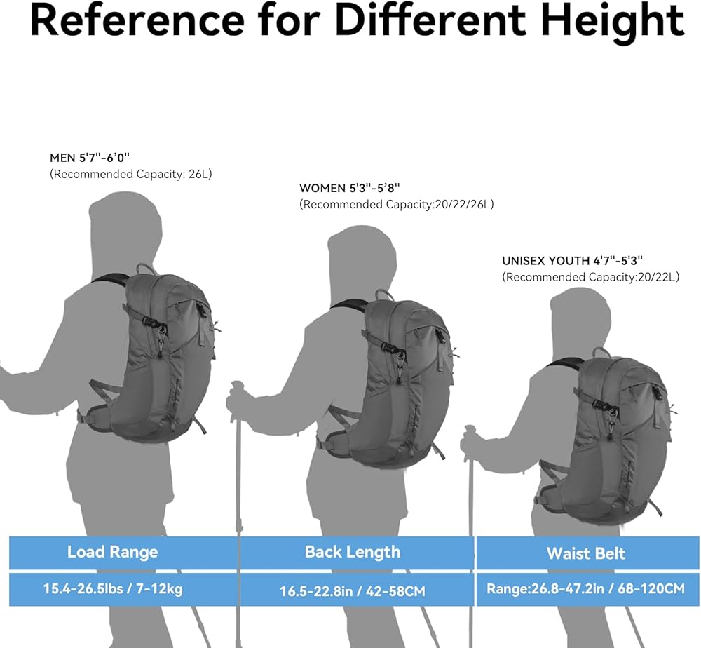 الأبعاد: توفر حقيبة التنزه سيرًا على الأقدام هذه مساحة تخزين تبلغ 20 لترًا و26 لترًا للاختيار منها، وتزن 700 جرام. سواء كنت متجهًا للتنزه سيرًا على الأقدام أو رحلة تخييم في عطلة نهاية الأسبوع أو تحتاج فقط إلى حمل الكمبيوتر المحمول الخاص بك وغيرها من الضروريات، فمن المؤكد أن حقيبة الظهر هذه ستلبي جميع احتياجاتك.