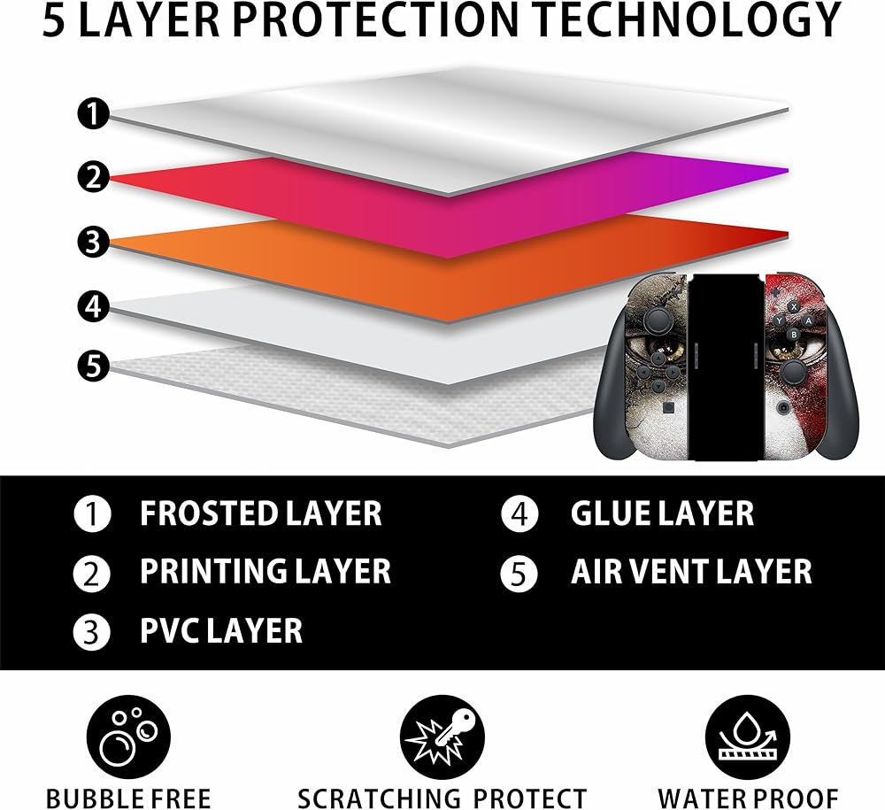 جودة ممتازة: أغلفة مفاتيح وحدة التحكم في الألعاب مصنوعة من مواد رفيعة للغاية ومتينة ولا تبهت. بفضل 5 طبقات حماية، فإن عناصر تبديل وحدة التحكم في الألعاب الخاصة بك أيضًا مقاومة للماء وخالية من الفقاعات ومقاومة للخدش وخاصةً لا تحتوي على بقايا غراء