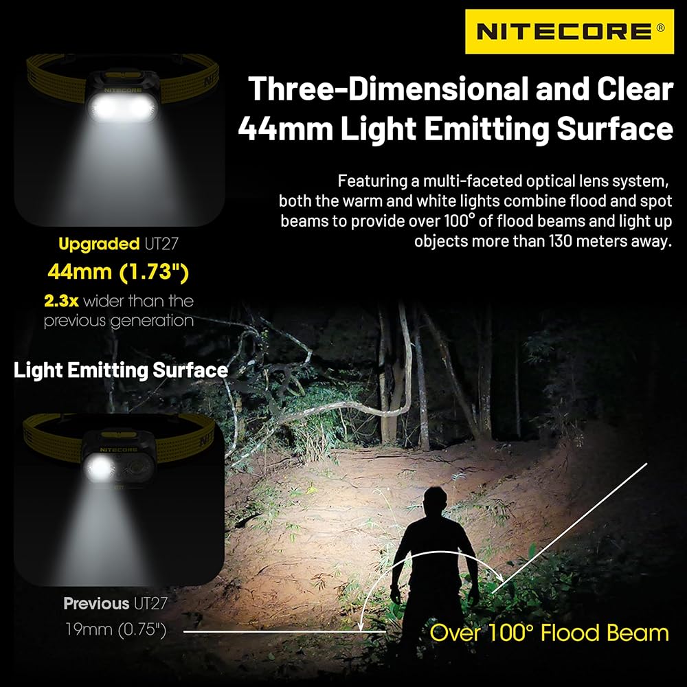 NITECORE today unveiled the latest addition in ultra lightweight outdoor headlamps: the upgraded UT27, equipped with dual primary lights and dual color temperatures for outstanding lighting performance and enhanced visibility. It surpasses its previous generation with better luminous efficiency and broader illumination, featuring a warm light and a versatile white light, each capable of operating independently to ensure expansive and consistent visibility.