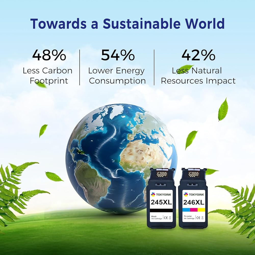 مطبوعات رائعة: استمتع بتجربة المطبوعات التي تتميز بألوان زاهية وصور نابضة بالحياة ومستندات واضحة. قل وداعًا للمطبوعات الباهتة ومرحبًا بالمطبوعات الواضحة والنابضة بالحياة مع مجموعة TOKYOINK 245xl 246xl