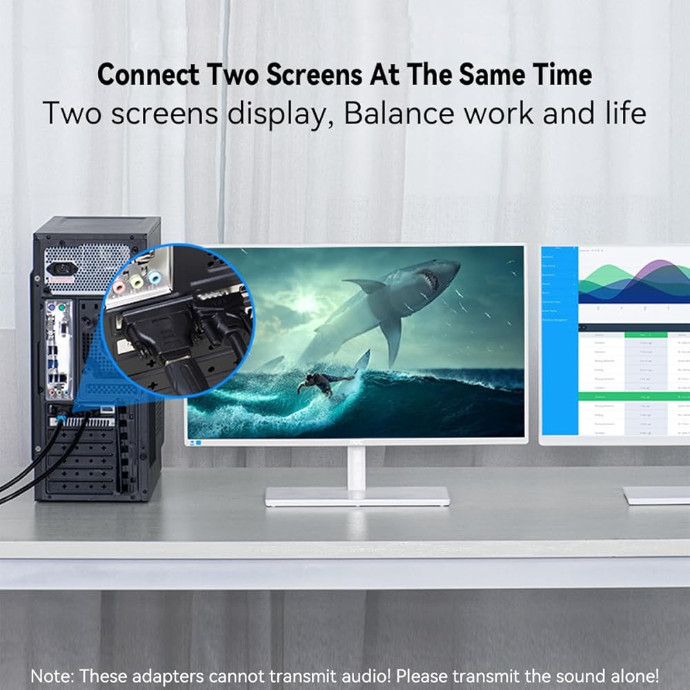 يدعم محول DVI إلى HDMI دقة فيديو تصل إلى 1920x1080P (Full HD) عند 60 هرتز، متوافق تلقائيًا مع الدقة المنخفضة. ولكن يرجى ملاحظة أن الصوت لن يتم إرساله في نفس الوقت!