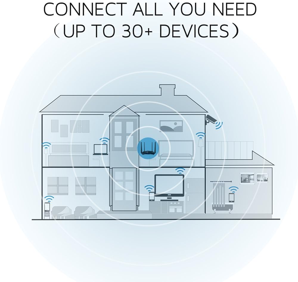 Connect 30+devices:provides blazing-fast Wi-Fi to multiple devices all at the same time, and the same speed,over 30+devices