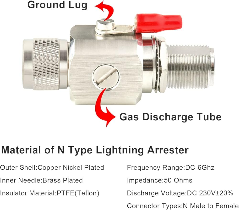 • ⚡[التوافق]: نطاق تردد مانع الصواعق من النوع N يصل إلى 6 جيجا هرتز، ويمكنه دعم الأجهزة 2.4 جيجا هرتز و5 جيجا هرتز. مناسب لمعدات خدمة WIFI عالية التردد و2G/3G/4G LTE والراديو وغيرها من المعدات ذات التردد المنخفض.