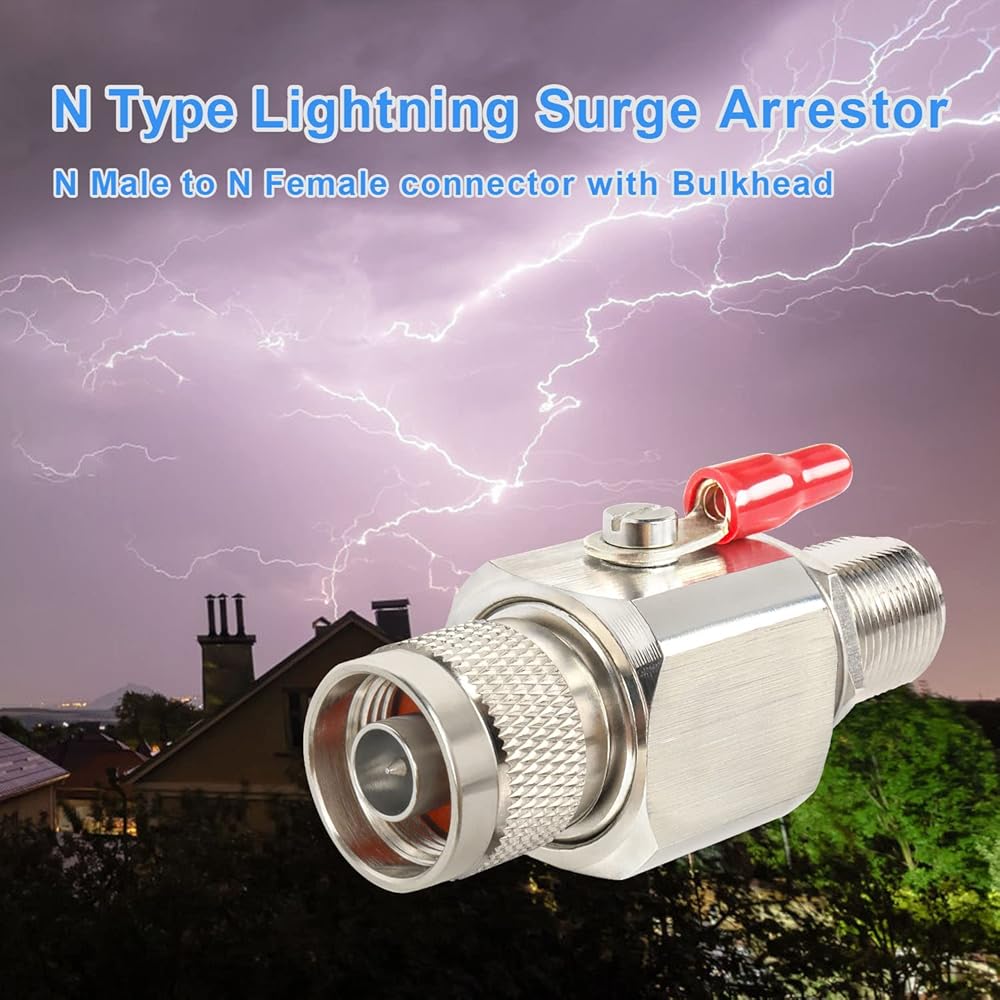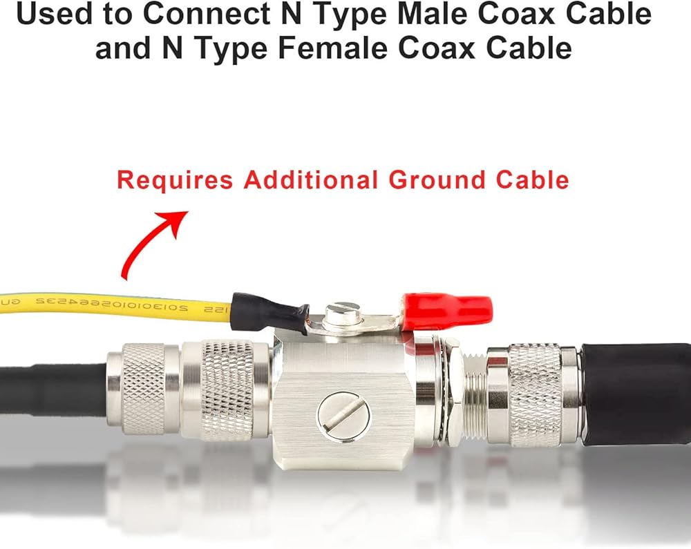 • ⚡[الوظيفة]: يتم استخدام مانع الصواعق من النوع N 50 أوم ذكر إلى أنثى لحماية معززات الإشارة من ضربات البرق. يتم تثبيته بشكل عام بين مكبر الصوت والهوائي الخارجي. مطلوب سلك أرضي إضافي للتثبيت.