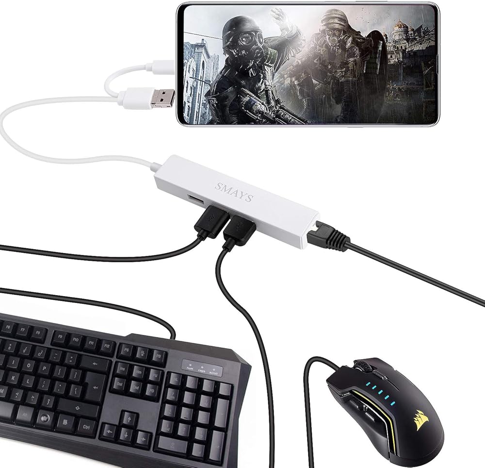 OTG Hub - يعمل موسع منفذ USB مع لوحة الألعاب (وحدة تحكم Xbox، PS3) ولوحة المفاتيح والماوس ومستقبل USB Bluetooth وقرص فلاش USB وSSD وقارئ البطاقات ونقل البيانات وما إلى ذلك