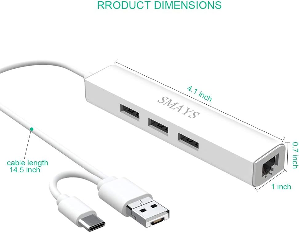 محول RJ45 LAN - أضف منفذ إنترنت سلكي أو بديل إلى الكمبيوتر (MacBook، Chromebook، Samsung Galaxy Tab، Pi Zero)، مشغل وسائط البث التلفزيوني (Firestick، Roku، Xiaomi TV box)، والهاتف الخلوي (LG، Huawei، Nokia)